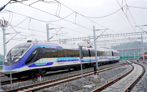 “車(chē)輛啟動(dòng)!”6月19日上午10時(shí),隨著指揮人員的一聲令下,藍(lán)白相間的市郊鐵路璧銅線(xiàn)首列車(chē)輛從銅梁停車(chē)場(chǎng)緩緩啟動(dòng),正式開(kāi)啟了首次上線(xiàn)熱滑試驗(yàn)。